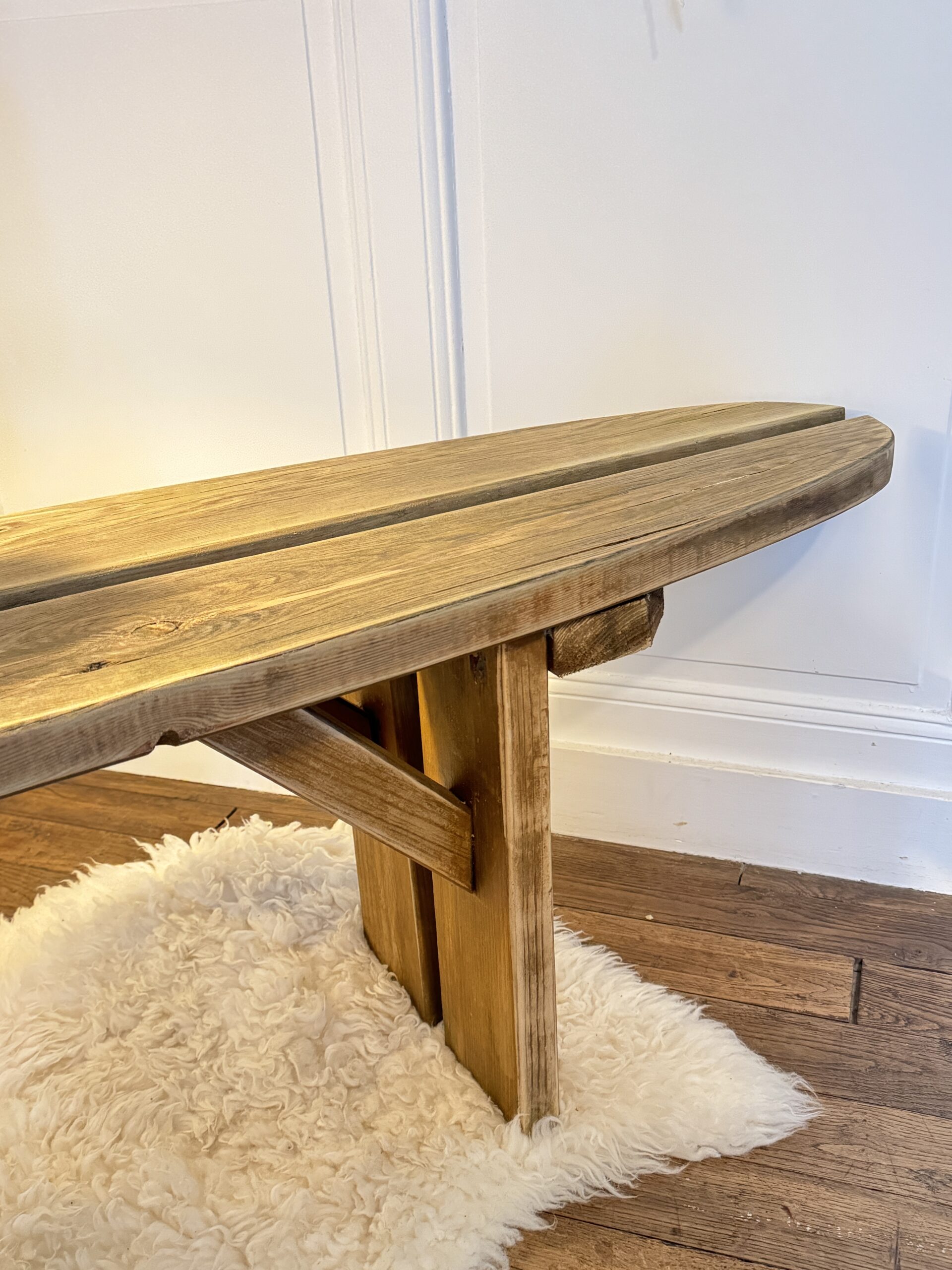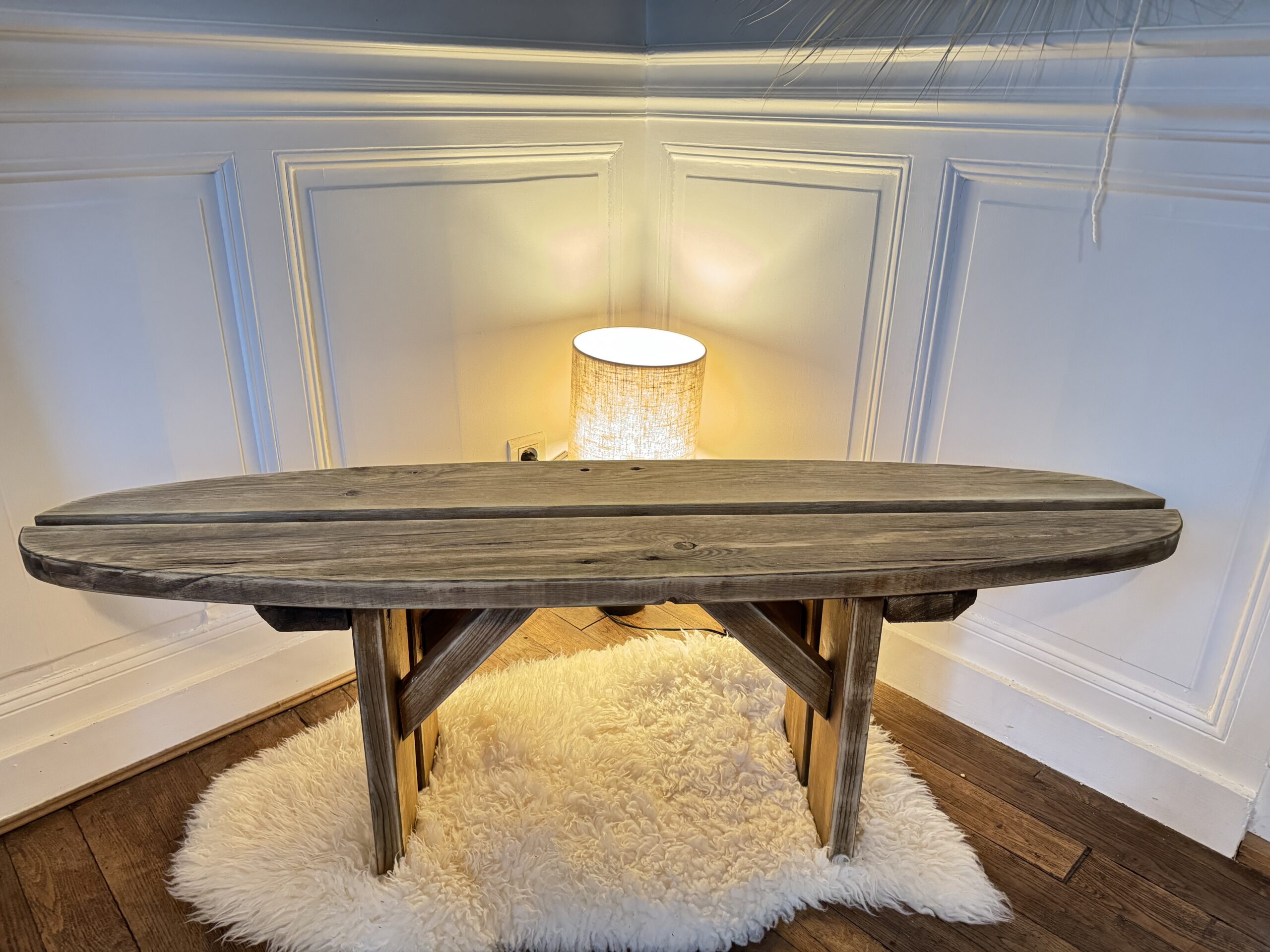 Atypique par sa forme arrondie rappelant la planche d’un surf.