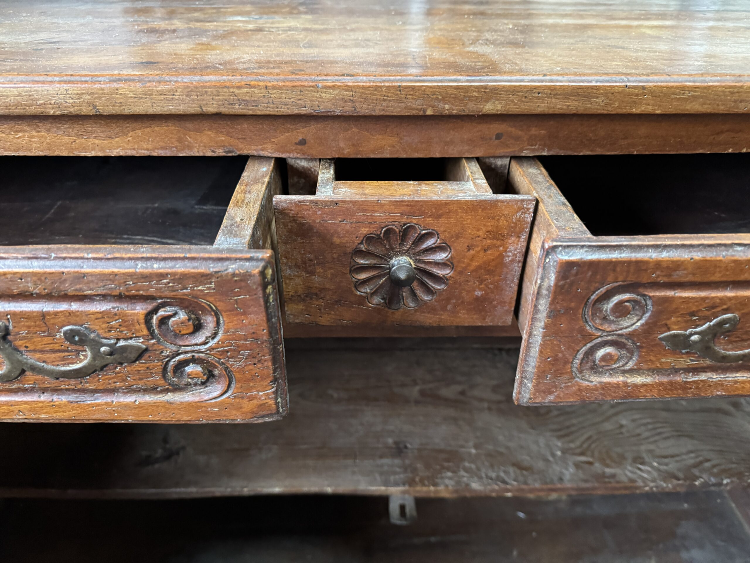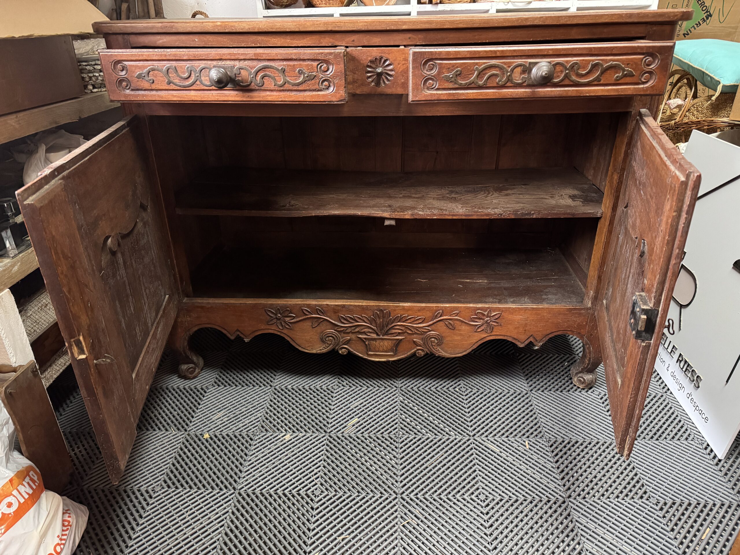 🪵 Buffet de ferme ancien en bois massif – Pièce unique, sculptée & avec tiroir secret
